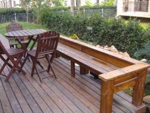 1、應注意防腐木材的吸水率。在室外環境中使用防腐木材時,木材可能因破水而膨脹,因此,在設計中好留有一定的空間,避免大面積的膨脹變形,特別是對于吸水率較高的木材,應留有較大的空間。