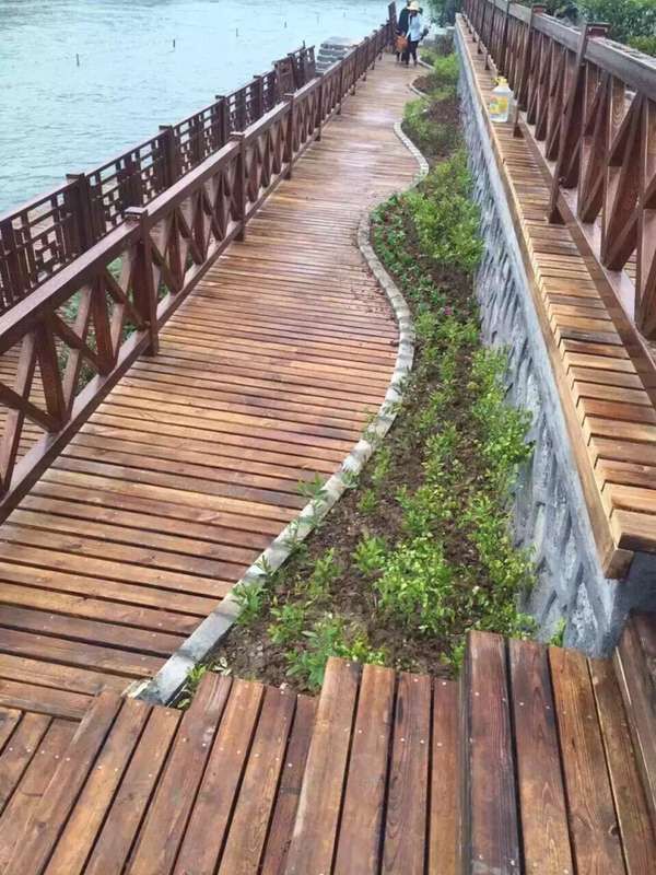 4、防腐木易于涂料及著色,根據(jù)設(shè)計要求,能達到美輪美奐的效果。
