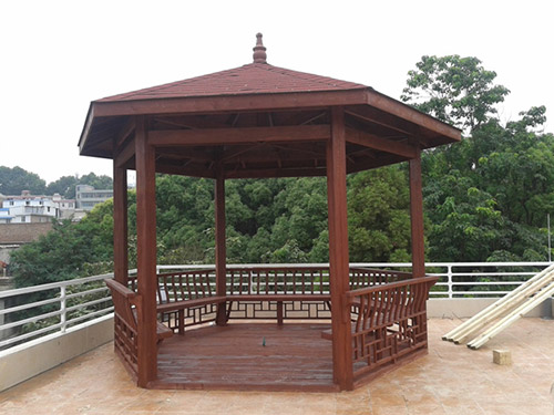 防腐木涼亭,是指用防腐木組建而成的涼亭。所使用的防腐木是經過特殊防腐工藝處理后的木材,具有防腐爛、防白蟻、防真菌的功效。故此類涼亭穩定性強、使用期限長、性價比高。
