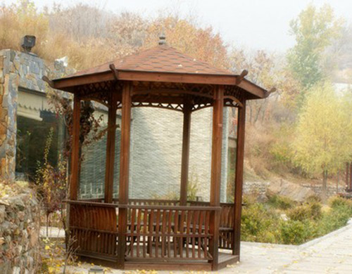 節(jié)能性:亭子的能源效益是由構(gòu)成該亭子外殼的結(jié)構(gòu)體系和材料的保溫特性所決定的。木結(jié)構(gòu)的墻體和屋架體系由結(jié)構(gòu)木方、板材、保溫棉填充而成,測試評估表明150mm厚的木結(jié)構(gòu)墻體,其保溫能力相當(dāng)于610mm厚的磚墻,木結(jié)構(gòu)建筑相當(dāng)于混凝土結(jié)構(gòu)建筑可節(jié)能50%-70%。
